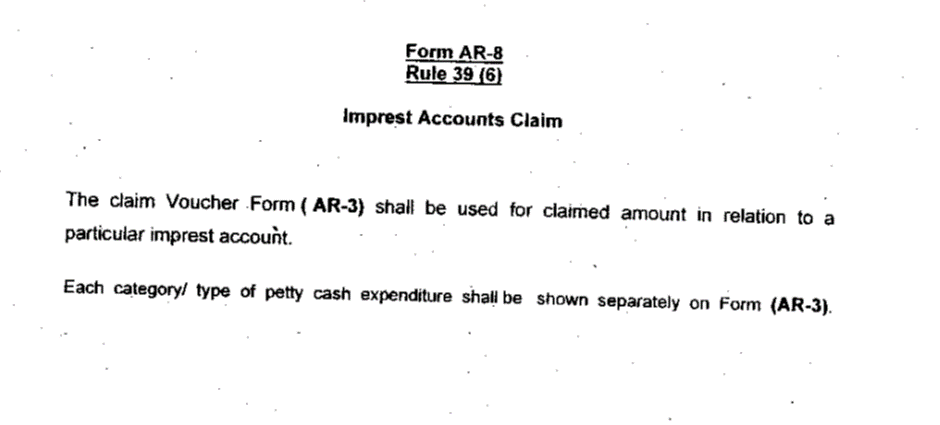 (6) The original vouchers must be produced to support the claim for recoupment in the specified claim Form AR-8 and the imprest accounts register shall be maintained in Form AR-9.